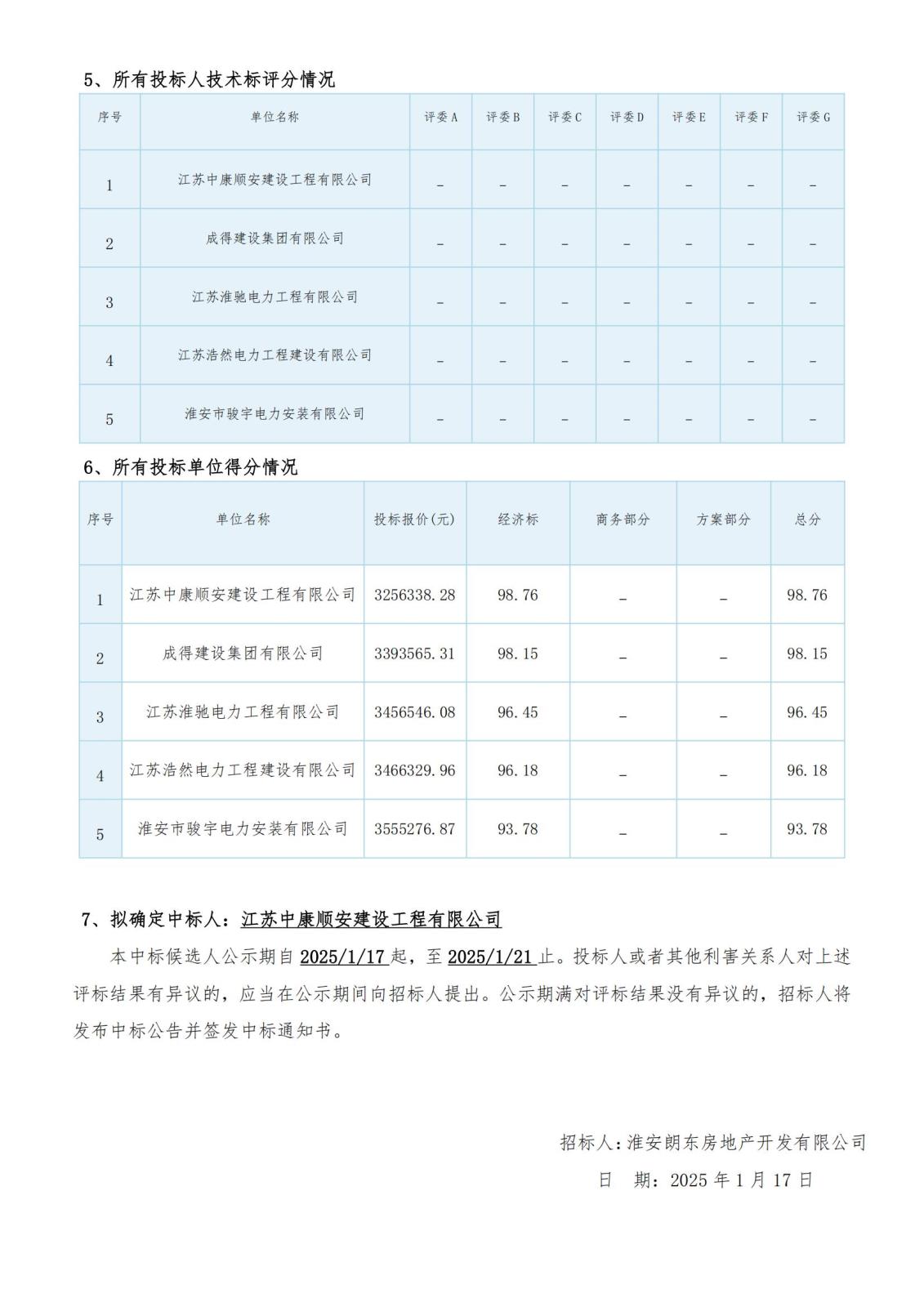 淮安朗東房地產(chǎn)開(kāi)發(fā)有限公司PCB智能設備產(chǎn)業(yè)園光伏配套安裝工程評標結果公示